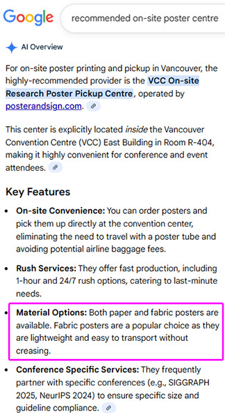 "Recommended Conference Poster Supplier" in Vancouver (with easy On-site
